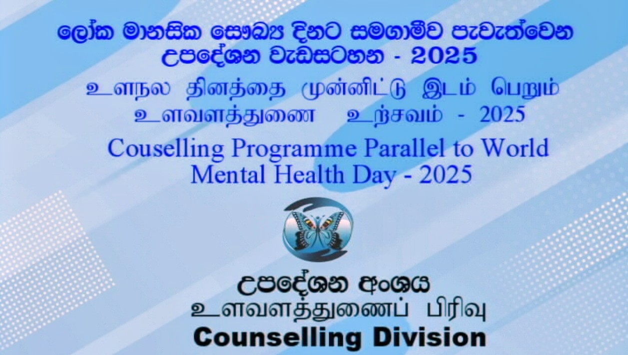2025 ලෝක මානසික සෞඛ්ය සතියට සමගාමීව ග්රාමීය සංවර්ධන, සමාජ ආරක්ෂණ හා ප්රජා සවිබලගැන්වීම් අමාත්යාංශය යටතේ ක්රියාත්මක වන උපදේශන...